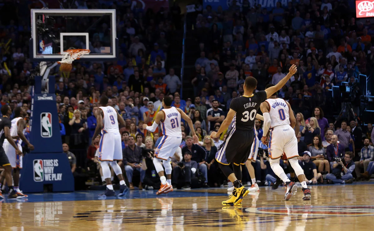 P.s. "Bang! Bang! Oh what a shot from Curry!", Mike Breen exclaims as Curry hits a deep three to solidify a win in a beautiful pair of Curry 2s (pictured above). His second signature sneaker, these shoes were debuted for one of the first times at this OKC overtime thriller. Too bad for Nike that they spelled his name wrong when they were offering Curry a sponsorship, because now they have to watch a missed opportunity steal the spotlight in almost every game he plays.