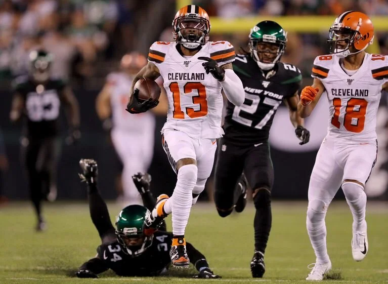 P.S. Here we have the glorious, one and only Odell Beckham Jr. clocking in at 21.70 mph en route to his 89 yard touchdown earlier this year. What makes this possible? His always-custom cleats. Modeled after the lettering on the Nike Air Uptempo, this specific signature model mirrors both Brown's colors and the “Shattered Backboard” Air Jordan 1. Constantly in a league of his own when it comes to on-field footwear, Odell hasn’t been slowing down this season as he’s brought out at least two custom cleats each game. We await what he dons next…